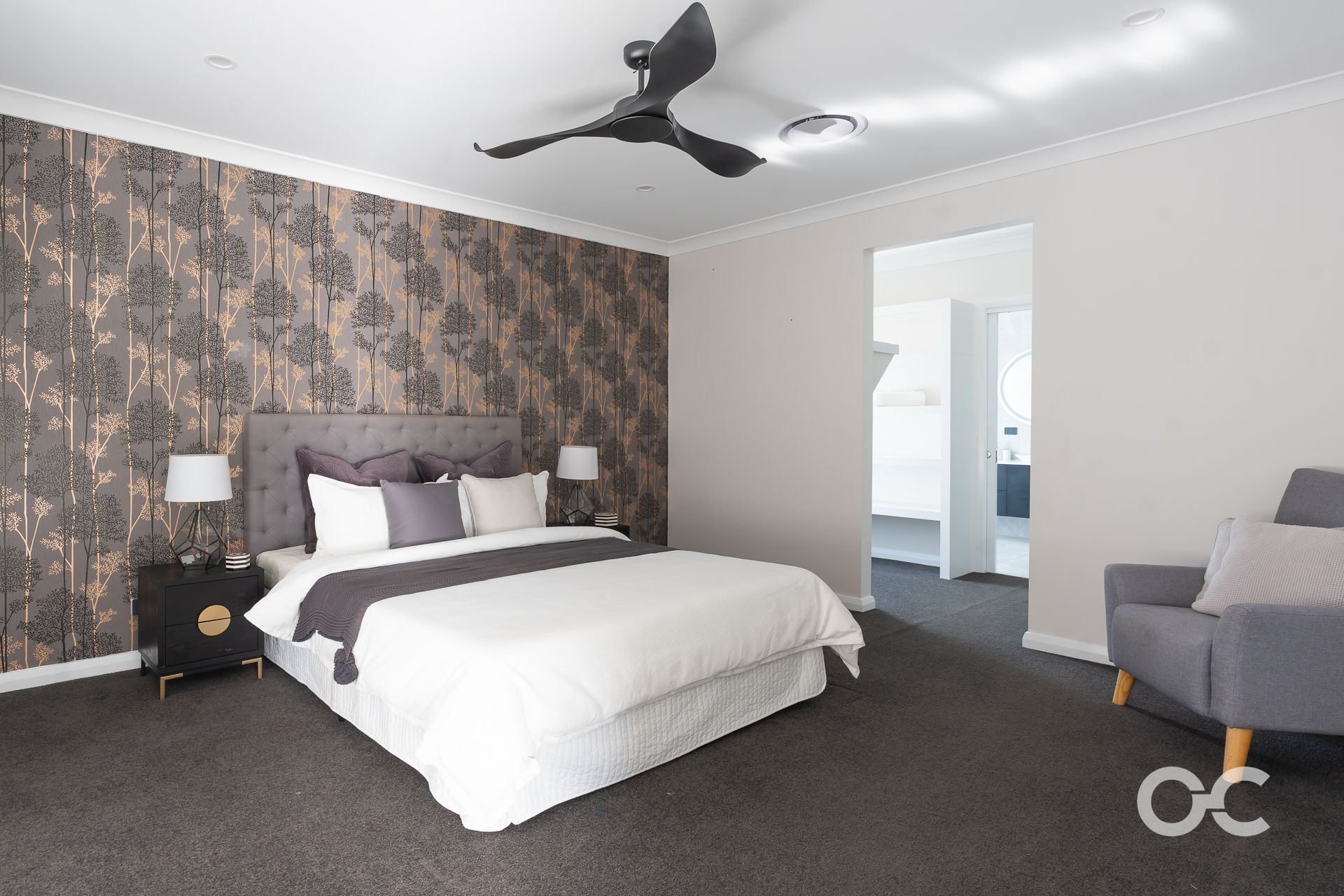 - Master bedroom with custom walk-in wardrobe and ensuite