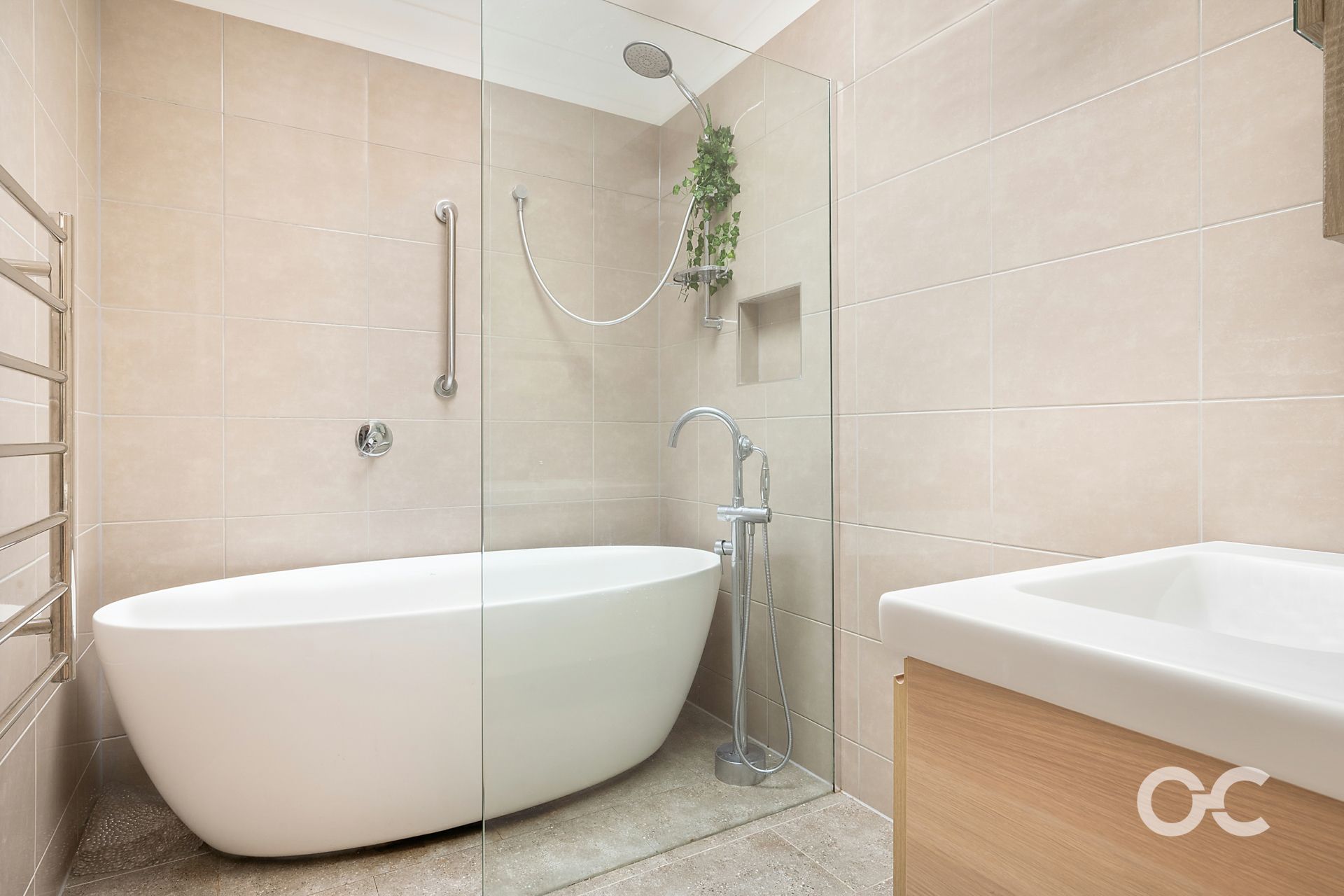 - Modern bathroom with a separate toilet