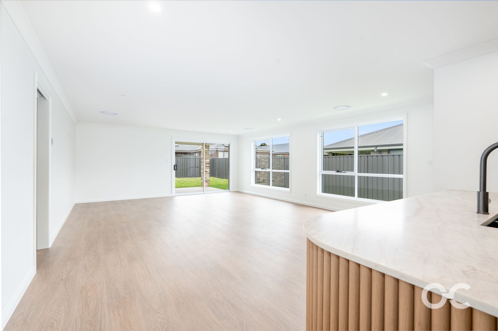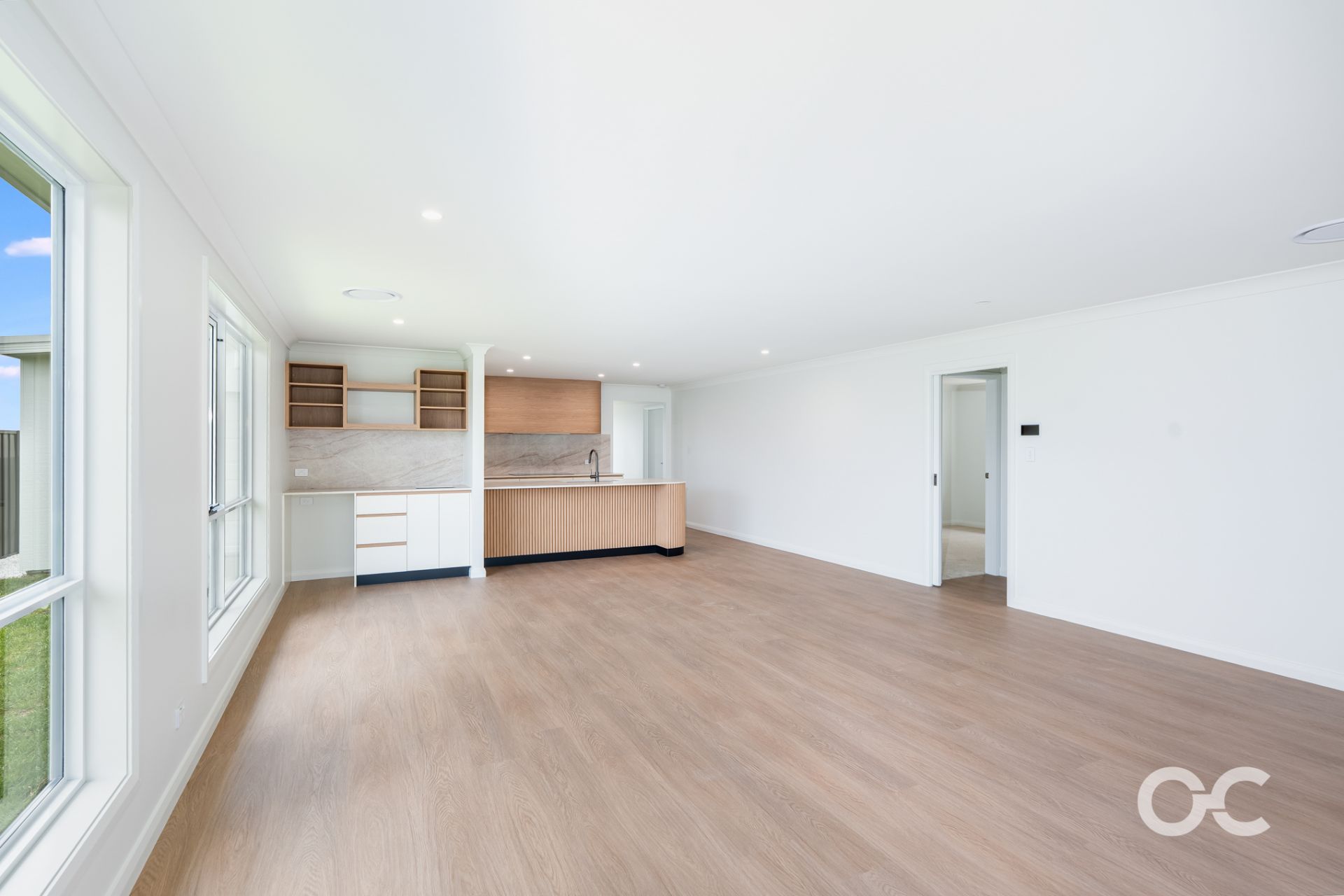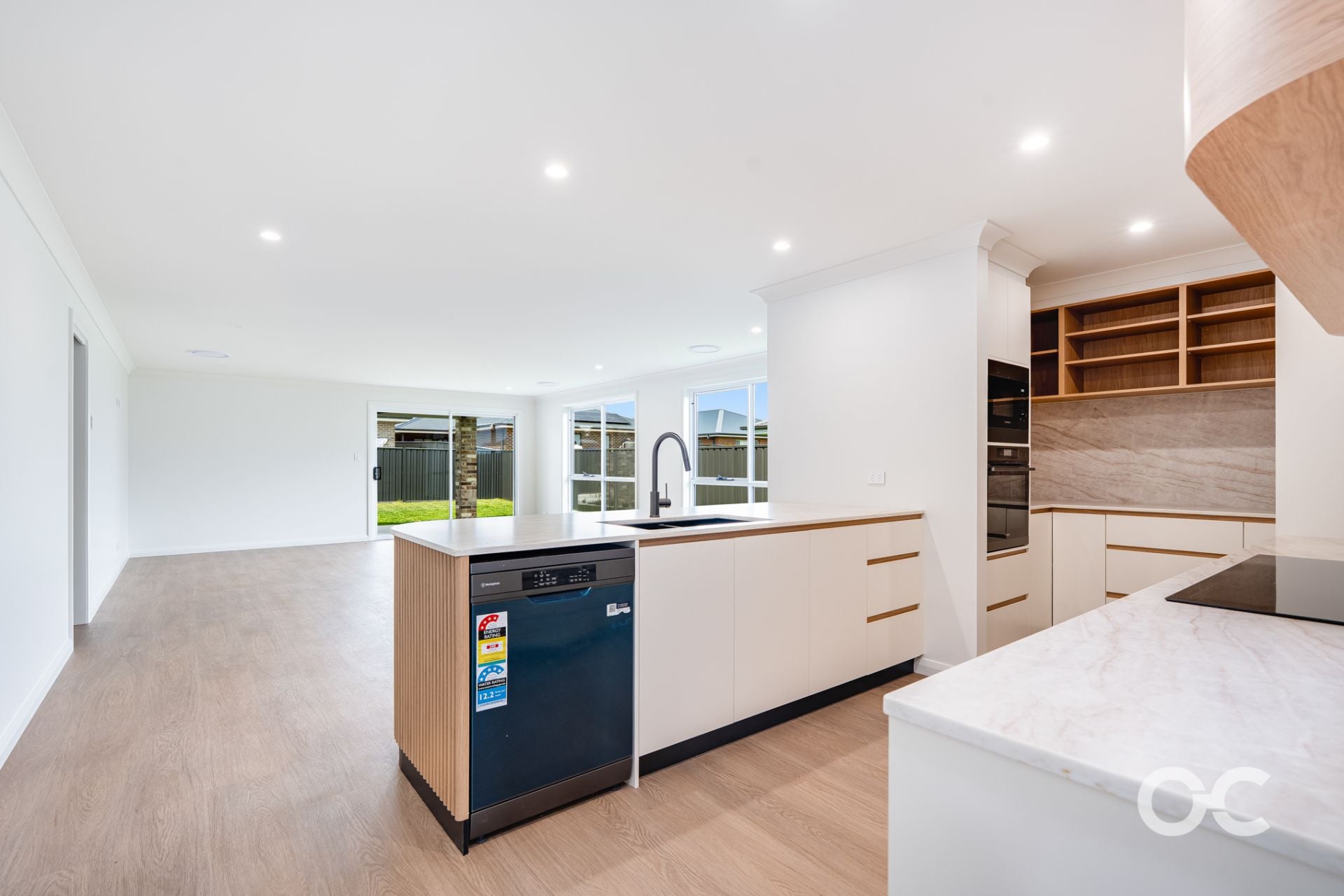 - Open-plan kitchen, living, and dining area