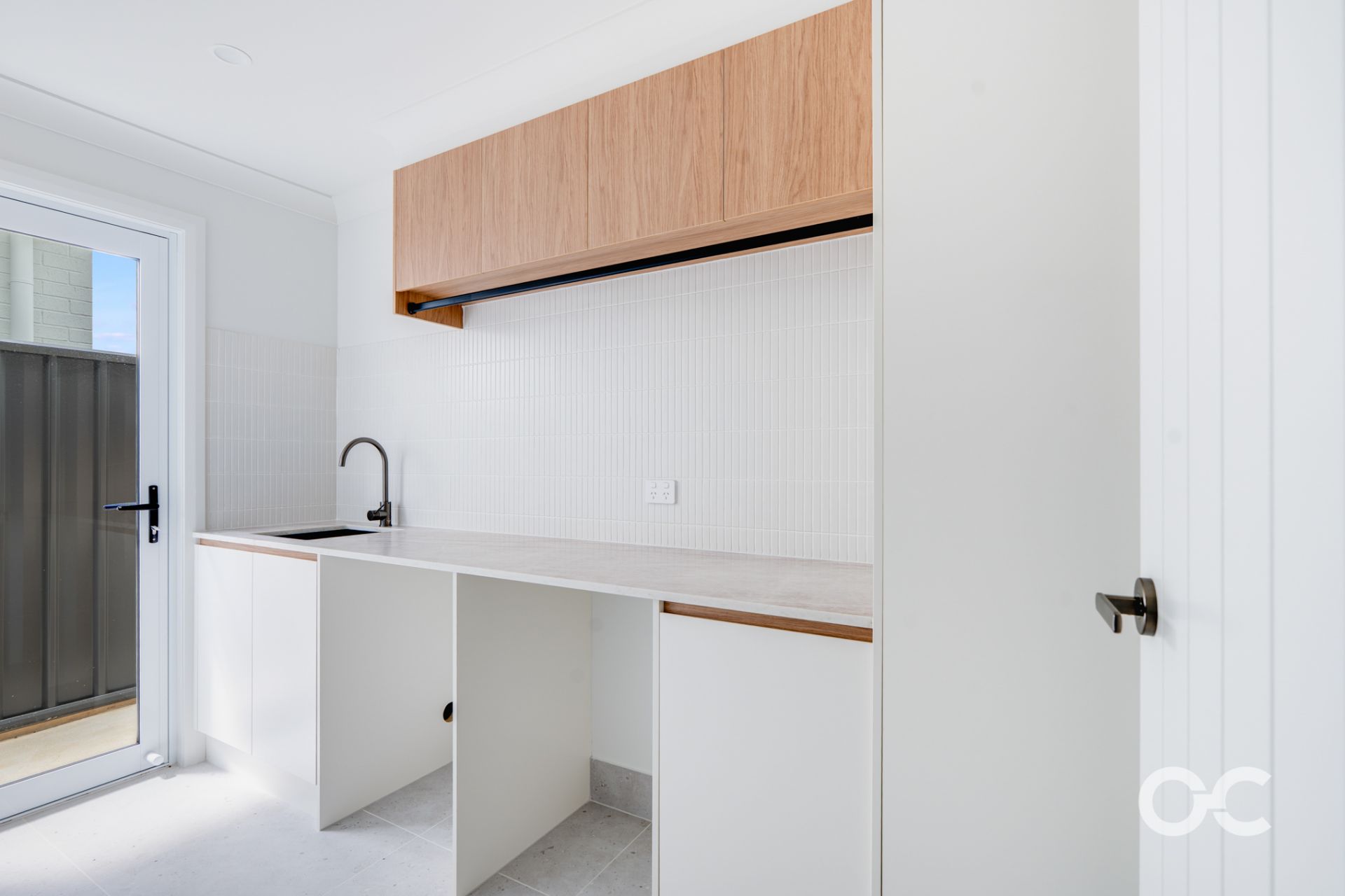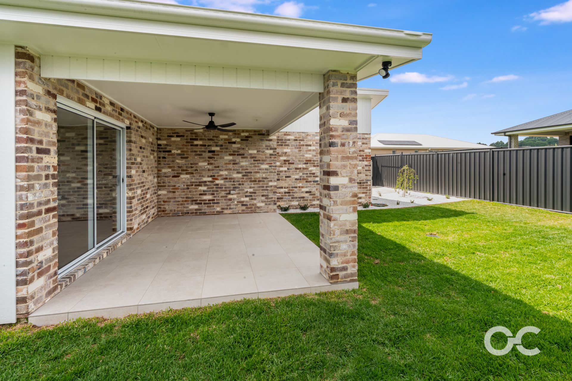 - Outdoor tiled alfresco area with ceiling fan